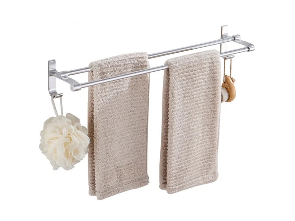 - Kovový kúpeľňový vešiak v štýle podkrovia. < li>Vyrobené z masívneho strieborného hliníka.