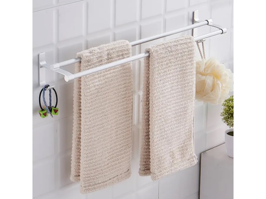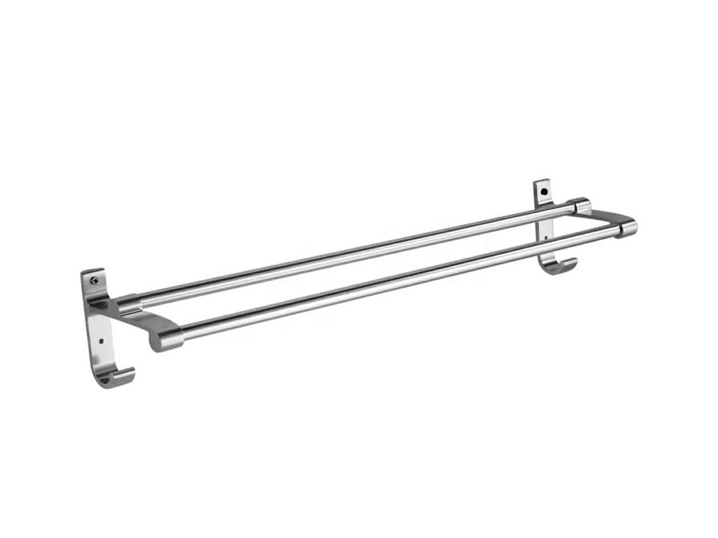 Kovový kúpeľňový vešiak v štýle loft. Vyrobené z masívneho hliníka striebornej farby. Výrobok je odolný proti vlhkosti a oderu, čo zaisťuje dlhé a bezproblémové používanie. Držiak má dve ramená na zavesenie uterákov. Štandardná skrutková zostava (vrátane všetkých prvkov).