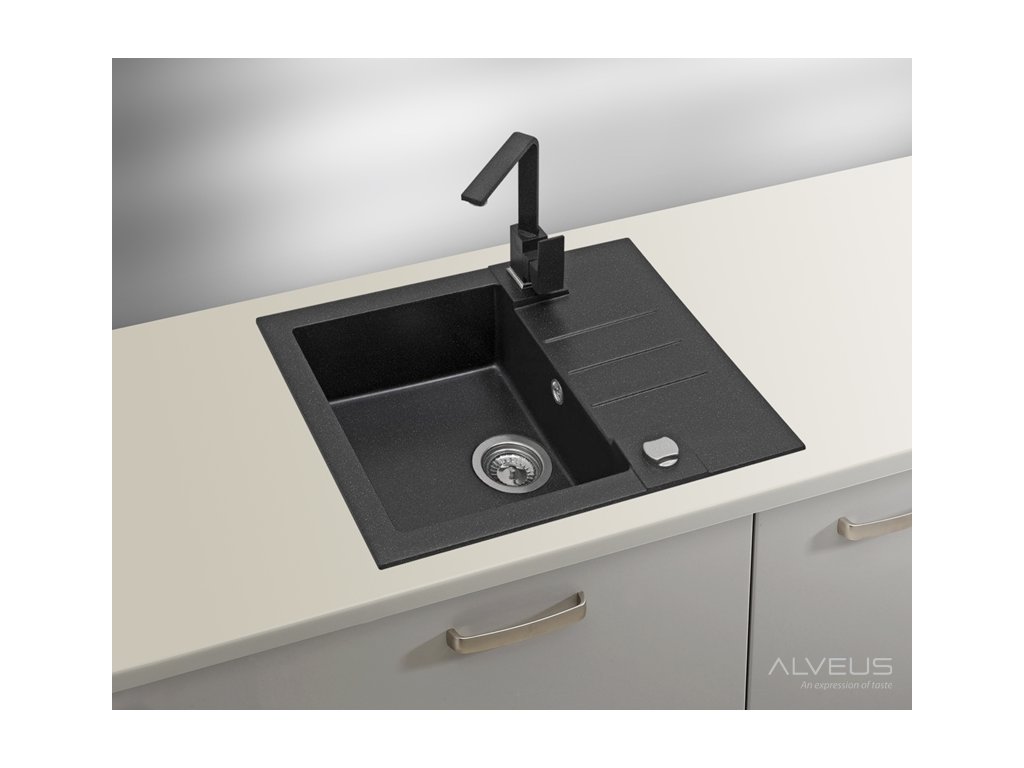 Alveus Rock 30 Čierna drez granitový s odkvapom + pop-up sifón