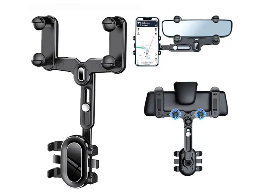 Univerzálny držiak do auta pre mobilné zariadenia. Inštalácia na spätné zrkadlo zaisťuje pohodlné ovládanie telefónu vodičom. Možnosť plne nastaviť uhol sklonu telefónu v rovine 360 stupňov umožňuje jeho umiestnenie tak, aby bol displej dokonale viditeľný. Pohodlné, nastaviteľné rameno navyše zvyšuje komfort používania. Kompatibilný so všetkými štandardnými smartfónmi a tabletmi.Funkcie a špecifikácie produktu: