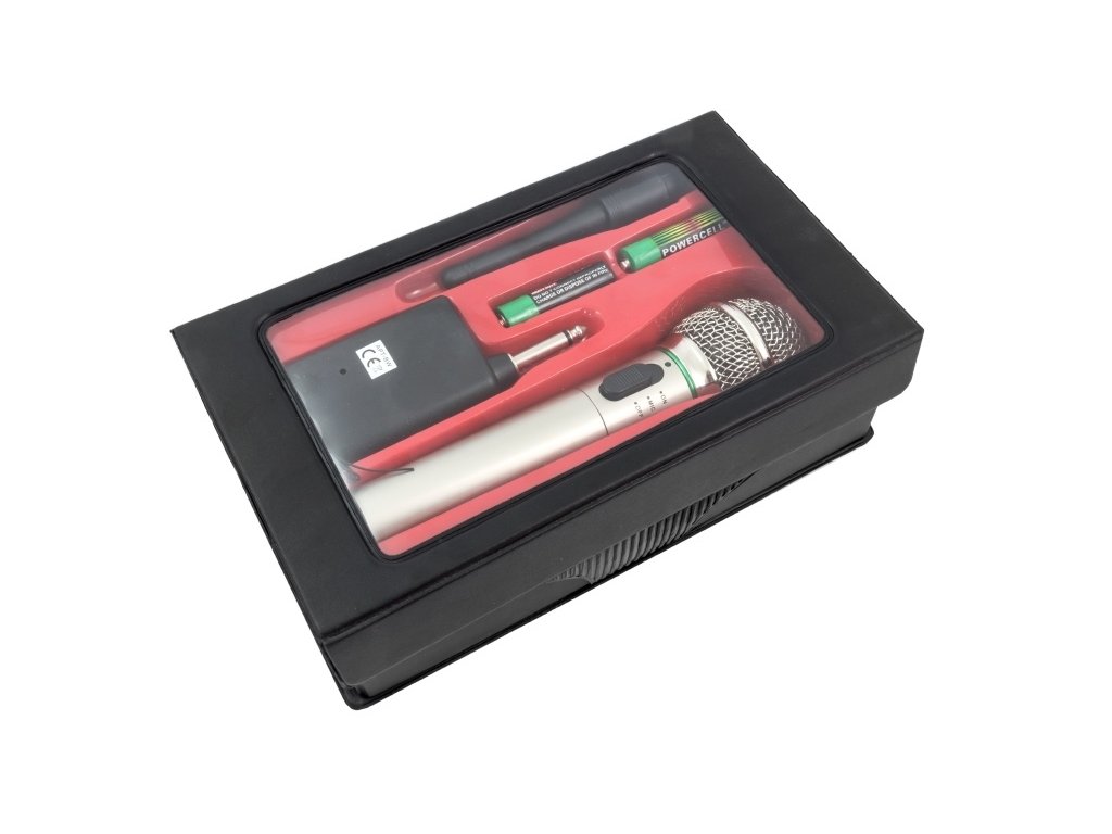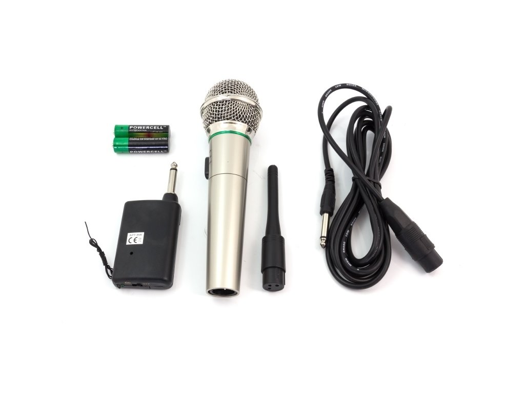 APT AG100A Bezdrôtový mikrofón dynamický 600ohm jack 6,3mm Mikrofón je veľmi citlivý - perfektne sníma hlas z okolia. Ideálne pre karaoke, konferencie a prejavy, kluby a diskotéky. Možno použiť ako bezdrôtové alebo drôtové. Veľký rozsah ovládania umožňuje veľkú voľnosť pri rozprávaní a speve. Veľmi jednoduché použitie - stačí pripojiť prijímač k vášmu zariadeniu, zosilňovaču alebo inému audio zariadeniu. Štandardné rozmery - pasuje na komerčne dostupné mikrofónové stojany. . Špecifikácia:Zástrčka prijímača: Big JackVysielacia frekvencia: FMVstavané tlačidlo zapnutia / vypnutia / stlmeniaFrekvenčná odozva: 100Hz-10000HzVýstupný odpor: 600 OhmS/N:> = 60 dBFrekvencia: 110-120 MHzEfektívny dosah: 8m (maximálne až 10m)Dĺžka kábla: 3mRozmery mikrofónu: priemer 5cm, dĺžka 18-28cmStrieborná farba Zahrnutá:Bezdrôtový mikrofónAnténaKa, AA batérie do prijímačaVšetko je zabalené v estetickom kufríkuDodatočné parametre