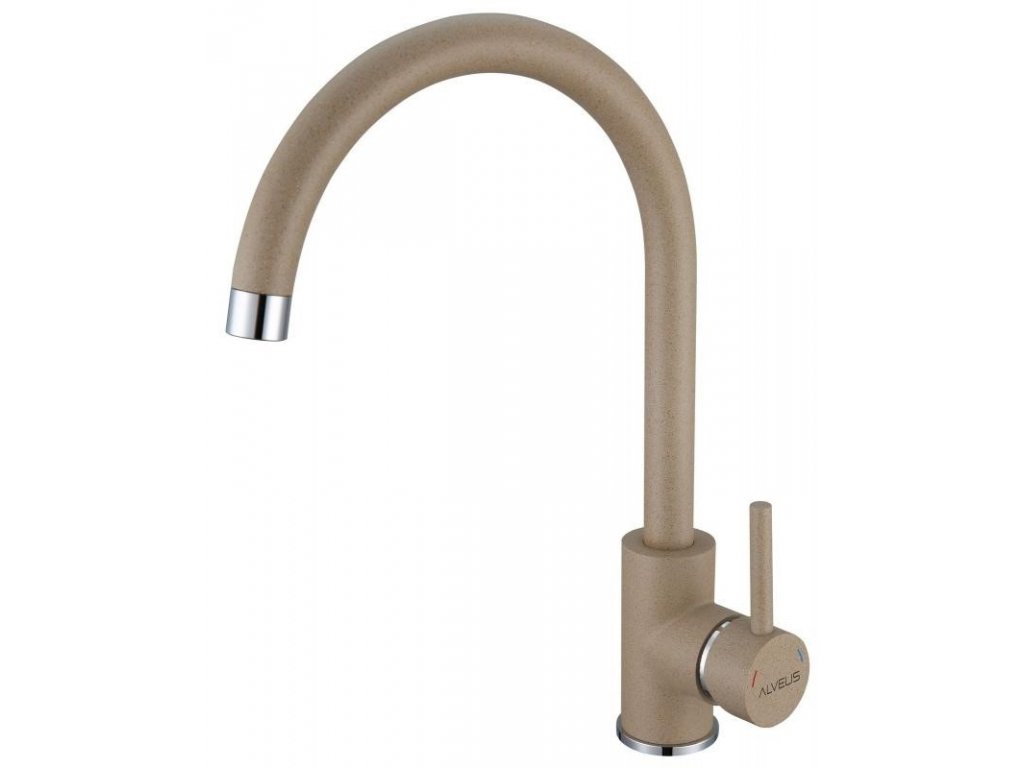 Vodovodná drezová batéria Alveus Roxa Béžová Nadčasová granitová drezová batéria Alveus Roxa v odtieni betón je otočná, páková, vysokotlaková batéria s keramickou kartušou. Patrí medzi vyššie batérie pre svoju výšku 351 mm. Montážne príslušenstvo je súčasťou balenia pre jednoduchú montáž do otvoru priemeru 35 mm. Tento model je dostupný v čiernej 91, béžovej 55, v odtieni betón 81 a navyše ešte v celochróme. Granitové batérie Alveus farebne ladia k rovnofarebným drezom Alveus. Ponúkame aj cenovo výhodné sety - drez + batéria s darčekom zadarmo. Typ batérie: drezová, stojanková, jednopáková, vysokotlaková Rozmer: 351 mm vysoká Kartuš: keramická Otočné ramienko: áno Vyťahovacia koncovka: nie Sprcha: nie Materiál: granital + chróm Farba/odtieň: béžová 55 Modelový rad: Roxa Montáž: do otvoru s priemerom 35 mm na pracovnú dosku alebo do otvoru v dreze Záručná lehota: 24 mesiacov Cena zahŕňa: drezovú batériu 2 pružné pripojovacie flexi hadičky dĺžky 350 mm inštalačná sadaDodatočné parametre