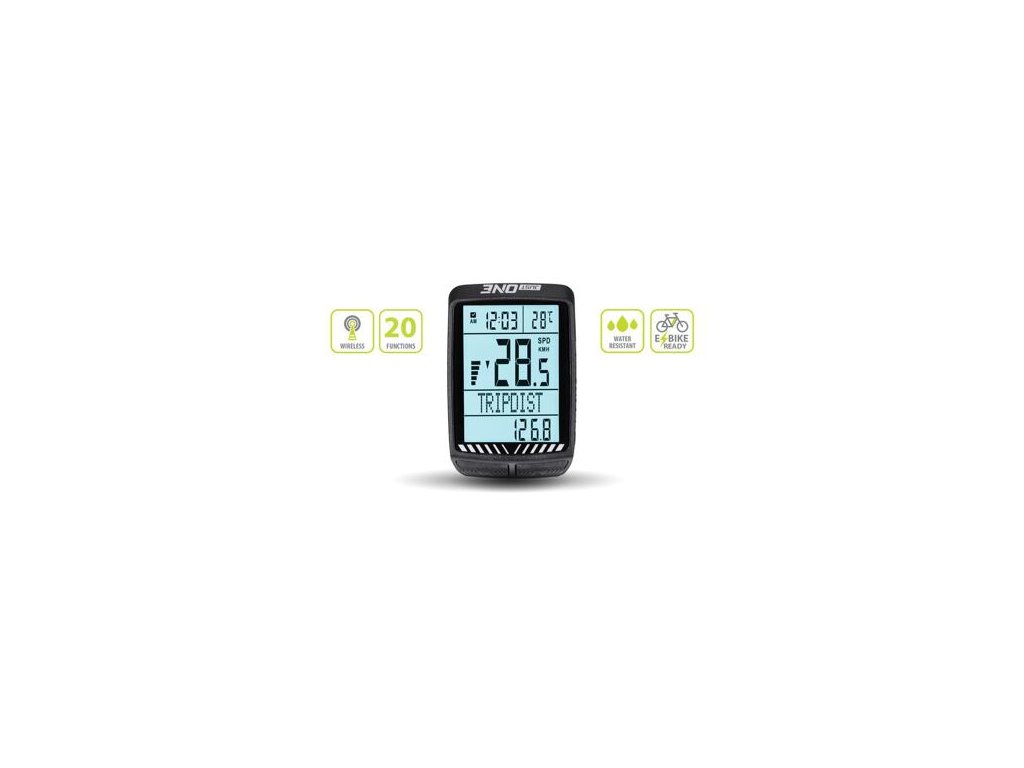 Bezdrôtový cyklocomputer One Brain 20.0 ATS by mal patriť medzi základné vybavenie každého cyklistu/cyklistku, ktorý chce mať dokonalý prehľad o svojom výkone. Tento moderný tachometer ponúka bezdrôtový prenos dát (ATS), prehľadný 4-segmentový displej s veľkými číslicami, jednoduchú montáž na riadidlá alebo predstavec, má vodeodolnú konštrukciu a 20 funkcií: okamžitá rýchlosť, priemerná rýchlosť, maximálna rýchlosť, porovnanie okamžitej a priemernej rýchlosti, grafický indikátor rýchlosti, denná prejdená vzdialenosť, celková prejdená vzdialenosť, prejdená vzdialenosť nad/pod priemernou rýchlosťou, denná doba jazdy, celková doba jazdy, spotrebované kalórie, hodiny (12/24 h), stopky, dátum, teplota, pamäť pre údaje za posledných 7 dní, auto štart/stop, automatická zmena údaje, podsvietenie displeja a viacjazyčné menu (EN, DE, FR, ES, IT).
