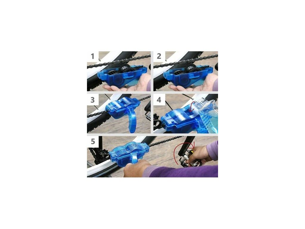 Čistenie reťaze je nevyhnutnou súčasťou údržby bicykla. Jeho pravidelným čistením predĺžite životnosť celého vášho hnacieho ústrojenstva a môže zlepšiť aj radenie. Vďaka čističu Merco Cleaner nemusíte reťaz ani dávať dole a čistenie je vďaka tomu oveľa jednoduchšie a rýchlejšie. Rozmery plastového čističa sú 13 x 12 x 7 cm a jeho hmotnosť je 98 g. Inštrukcie: - Pre otvorenie čističa nezabudnite najskôr zložiť držadlo. - Čistič pripevnite k spodnej časti reťaze a uistite sa, že je reťaz dobre usadená v kefách. - Nalejte čistiacu kvapalinu a točte reťazou pokiaľ nie je úplne čistý. - Reťaz nechajte uschnúť a potom ju nezabudnite premazať správnym olejom.Dodatočné parametre