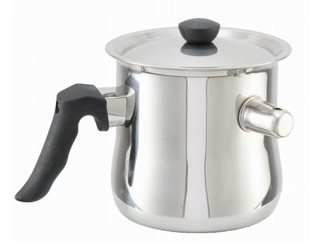 Oceľový hrniec na varenie mlieka s objemom 1,5 litra. Vybavený dvojitými stenami, ktoré zabraňujú vykypeniu mlieka. Priestor medzi stenami by mal byť vyplnený vodou, aby sa mlieko nespálilo. Bakelitová rukoväť má pohodlné prelisovanie a chráni pred popálením (nezahrieva sa). Hrniec je vybavený kovovou pokrievkou a vstavanou píšťalkou.