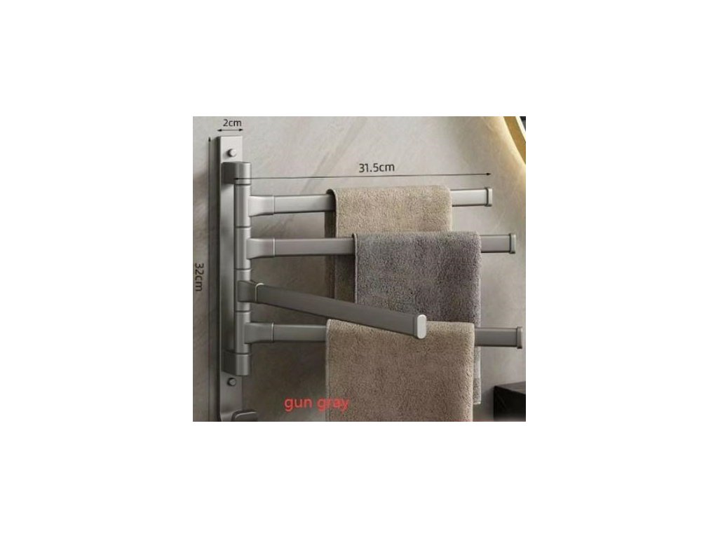 - Držiak má štyri nastaviteľné ramená na zavesenie uteráky