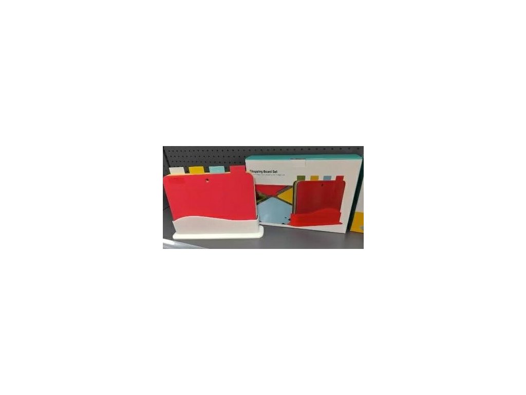 Sada štyroch farebných dosiek so samostatným stojanom. Farebné rozlíšenie uľahčuje ich zladenie s konkrétnym druhom potravín a zabraňuje prenosu baktérií medzi nimi. Každá doska má ďalší piktogram označujúci, na čo je určená.
