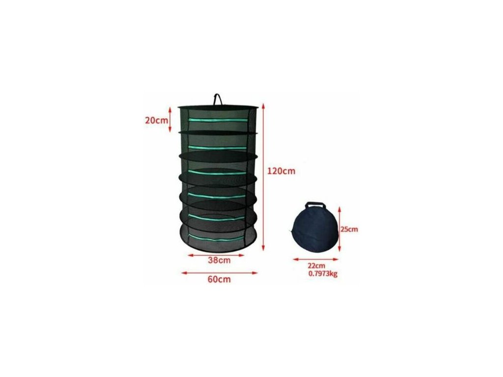 Závesná sušiaca sieť Dryer 120 ponúka jednoduché riešenie na sušenie byliniek, kvetov, ovocia a húb. Sieť kruhového tvaru s priemerom 60 cm a celkovej výšky 120 cm vytvára dostatočný priestor na sušenie rastlín. Sieť ľahko a rýchlo prichytíte za horné látkové pútko na suchý zips. Výhodou tejto skladacej siete je šesť samostatných poschodí s individuálnym prístupom na klasický zips. Sušte bylinky a rastliny v pohodlí domova so sušiacou sieťou Dryer 120. Parametre: - priemer: 60 cm - celková výška: 120 cm - hmotnosť: 770 g - materiál: polyesterová sieťovina, oceľové krúžky - výhody: úspora priestoru, samostatné poschodia, jednoduché uskladnenie - súčasťou obal na uskladnenie a prenášanieDodatočné parametre