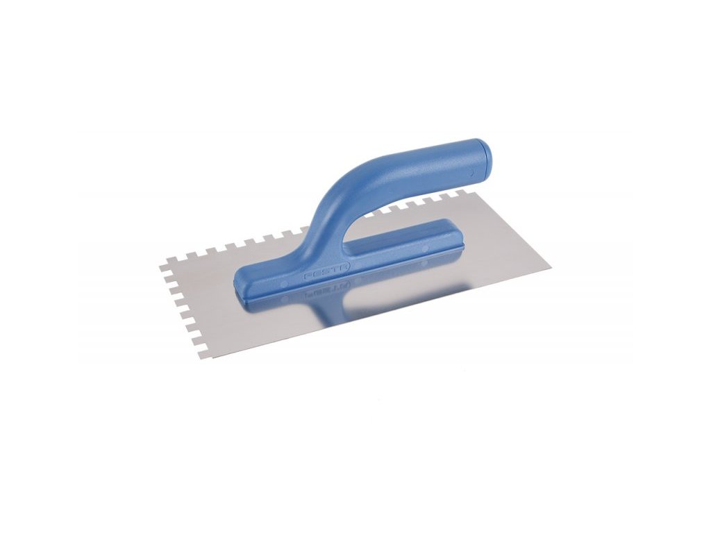 Hladítko nerezové zubové FESTA 280x130 mm, zub e8, s plastovou rúčkou, hr. plechu 0,8 mm. Používa sa najmä na nanášanie lepidiel pod obklady a dlažby, ďalej potom na nanášanie stierok, štukov, omietok, tmelov a ďalších stavebných hmôt. Hladítko nerezové zubové umožní natiahnuť lepidlo či stavebnú hmotu v pruhoch a výške podľa zuba hladidla.Dodatočné parametre