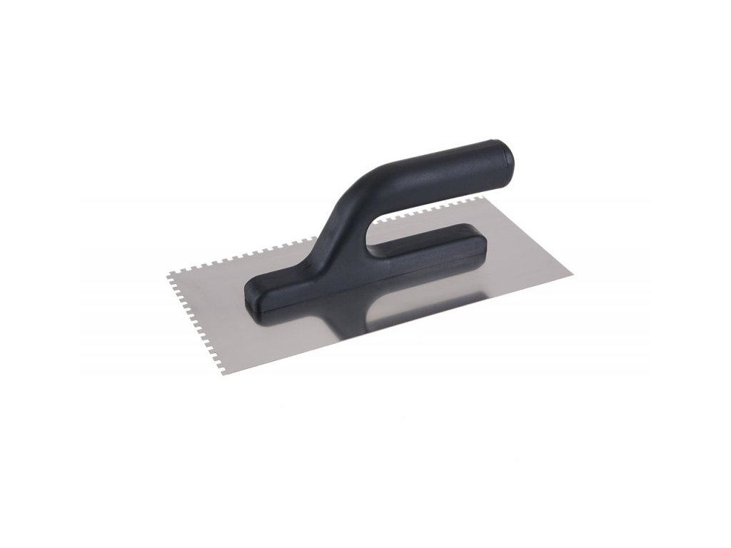 Hladítko nerezové 270x125 mm s plastovou rúčkou, zub e4, hrúbka plechu 0,7 mm. Ostrie je perfektne vytvarované, je vyrobené z tvrdenej nerezovej ocele. Používa sa najmä na nanášanie lepidiel pod obklady a dlažby, ďalej potom na nanášanie stierok, štukov, omietok, tmelov a ďalších stavebných hmôt.Dodatočné parametre