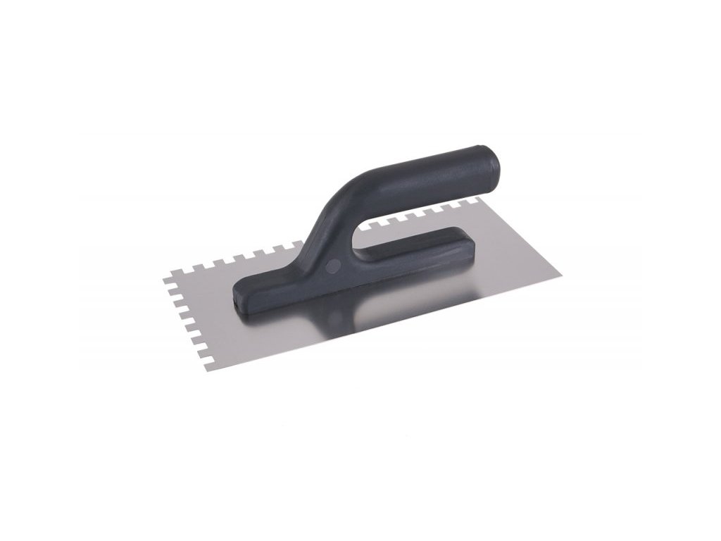 Hladítko nerezové 270x125 mm s plastovou rúčkou, zub e8, hrúbka plechu 0,7 mm. Ostrie je perfektne vytvarované, je vyrobené z tvrdenej nerezovej ocele. Používa sa najmä na nanášanie lepidiel pod obklady a dlažby, ďalej potom na nanášanie stierok, štukov, omietok, tmelov a ďalších stavebných hmôt.Dodatočné parametre