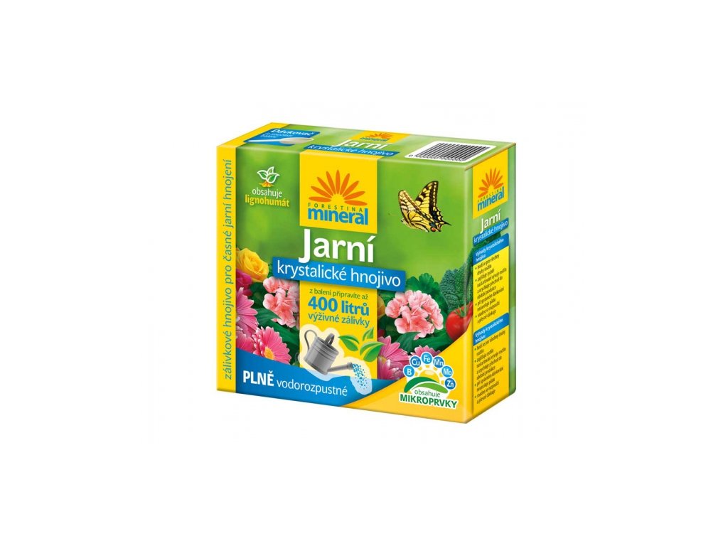 Kryštalické hnojivo na jarné hnojenie je plne vodorozpustné. Jedná sa o zálievkové hnojivo vhodné na celosezónne hnojenie. Vyváženým zložením hlavných živín a obsahom mikroprvkov poskytuje rastlinám všetko potrebné na zdravý vývoj. Obsahuje lignohumát. Z balenia je možné pripraviť až 400 litrov výdatnej zálievky. Balenie: 400 g.Dodatočné parametre