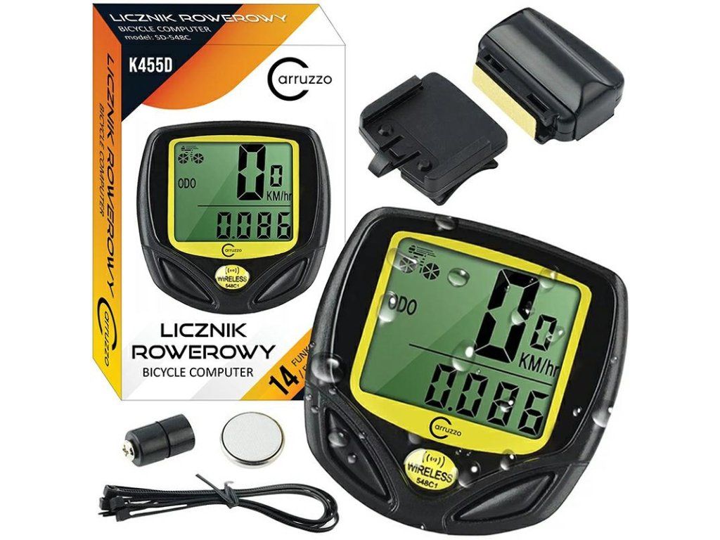 Bezdrôtový cyklocomputer. Vodeodolný. Značka: Carruzzo Vlastnosti produktu: - 14 funkcií - rozmery 45 x 45 x 20 mm - priemer kolesa 16-26" Vlastnosti zahŕňajú: - SPD - aktuálna rýchlosť - ODO - Celková vzdialenosť - DST - Dojazdová vzdialenosť - MXS - Maximálna