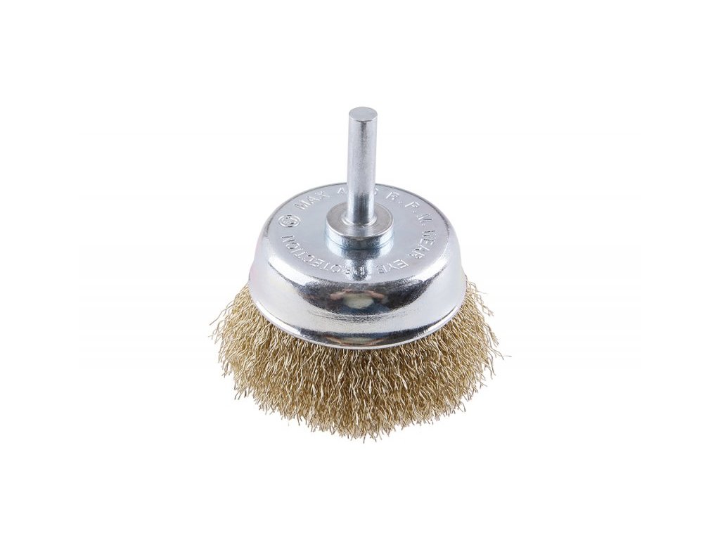 Rotačná kefa - črepníková, prevedenie: vlnitý drôt 0,25 mm - pomosadený, priemer 65mm, stopka 6 x 27 mm, pozinkované telo kefy, počet drôtov: 1512, dĺžka drôtu: 18,5 mm, max. prípustné otáčky: 4500 min, použitie: na leštenie, zdrsňovanie, odstránenie hrdze a otrepov, balenie: blister s eurootvorom.Dodatočné parametre