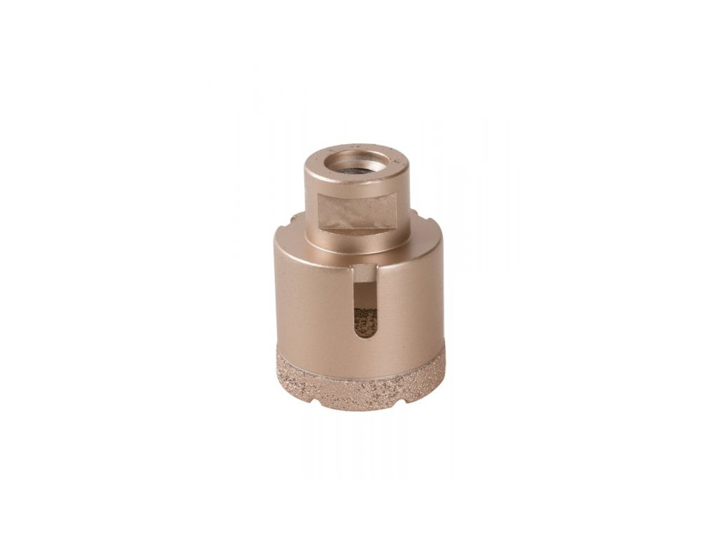 profesionálna vykružovacia diamantová korunka so závitom M14 - pre uhlové brúsky pre "suché" presné a rýchle vŕtanie do kameňa, dlažby, obkladov, žuly, mramoru a iných extrémne tvrdých materiálov nielen v stavebníctve výška vrstvy diamantu 10 mm, dlhá životnosť bez nutnosti použiť akýkoľvek pomocný nástroj vykrúžite presný otvor na požadovanom mieste doporučený pracovný postup - naskrutkujte korunku priamo na závit hlavy uhlovej brúsky, pevne dotiahnite, vykružovať požadovaný otvor začnite pod uhlom 45°, korunka a rýchlosť brúsky okamžite zaistí uchytenie v požadovanom mieste, pomaly pri rovnomerne vytvorenom tlaku narovnajte smer vykružovania do zvislej polohy, menšie priemery 6 - 14 cm je u vrt tvrdých dlažieb, medzi jednotlivými vrtmi, SCHLADIŤ - stačí ponoriť do pohára s vodou alebo nechať v otáčkach ochladiť vzduchom! Inštruktážne videoDodatočné parametre
