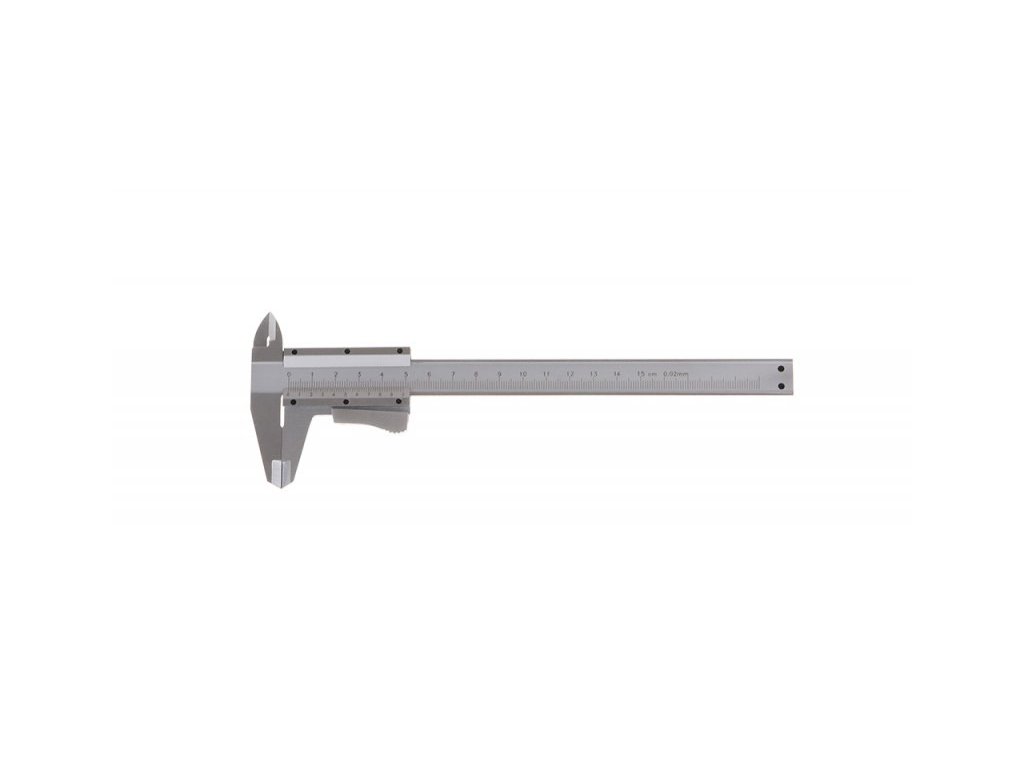 Posuvné meradlo 0 - 150 mm s presnosťou 0,02 mm, metrická stupnica v mm, hĺbkomer, kvalitná nerezová oceľ, presné spracovanie, plynulý posuv, tlačidlová aretácia, tabuľka prevodov jednotiek, plastové puzdro.Dodatočné parametre
