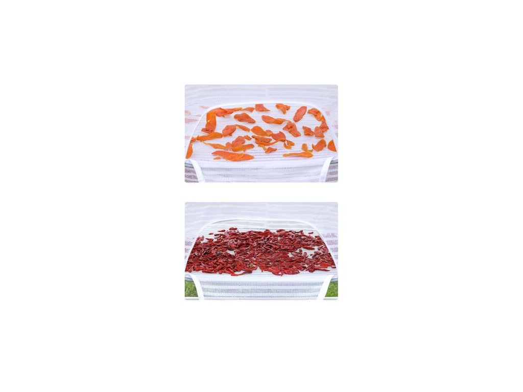 Závesná sušiaca sieť Multifunctional 2 ponúka jednoduché riešenie na sušenie byliniek, kvetov, ovocia a húb. Sieť oválneho tvaru s rozmermi 40 x 60 cm a výškou jedného sušiaceho poschodia 20 cm (2 poschodia celkom 40 cm) vytvára dostatočný priestor na sušenie rastlín. Sieť ľahko a rýchlo prichytíte za horný plastový háčik, ktorý na textilných popruhoch drží sieťku. Výhodou tejto skladacej siete s dvoma poschodiami je prístup z boku na klasický zips. Sušte bylinky a rastliny v pohodlí domova so sušiacou sieťou Multifunctional 2. Parametre: - šírka: 40 cm - dĺžka: 60 cm - výška: 40 cm - hmotnosť: 300 g - materiál: polyesterová sieťovina, oceľové krúžky, plastová karabína - výhody: úspora priestoru, samostatné poschodia, jednoduché uskladnenieDodatočné parametre