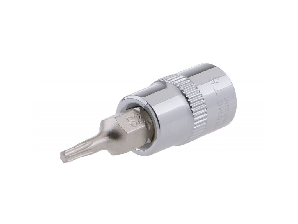 Skrutkovací nástavec TORX 8 1/4 so zalisovaným nástavcom z chróm-vanádiovej ocele.Dodatočné parametre