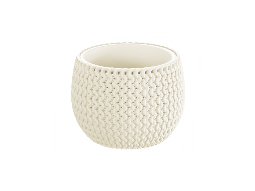 Matný plastový obal na črepník so špeciálne navrhnutou vnútornou vložkou. Má mierne sploštený okrúhly tvar a textúru verne pripomínajúcu tkanú silnú priadzu. Priemer: 18 cm, výška: 14 cm. Farba: béžová.Dodatočné parametre
