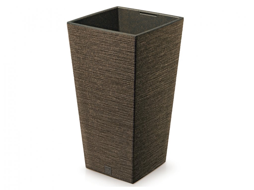 Plastový, matný obal na kvetináč v originálnom dizajne a eco friendly variante s obsahom až 33% dreva. Povrch je strukturovaný, zdobia ho jemné zvlnené drážky, ktoré dodávajú obalu hravosť, robustnosť a vo vysokej verzii zvláštnu eleganciu. Vďaka obsahu dreva získava obal zemitý vzhľad a ľahšiu biologickú rozložiteľnosť. Je vhodný do každého interiéru. Štvorcového pôdorysu, kónického tvaru. Výrobok je dodávaný ako set 2v1, ktorý sa skladá zo samotného obalu a vnútornej vložky, ktorá je určená na vysadenie. 100% recyklovateľný (plast, žltý kontejner). Vhodné do interiéru aj exteriéru. UV stabilný. Rozmery: šírka 24cm, hĺbka 24cm, výška 45cm. Objem kvetináča: 19l, objem vnútornej vložky 7,5l. Farba: tmavo hnedá.Dodatočné parametre