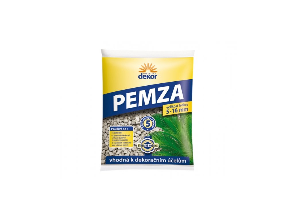 Pemza je prírodný materiál, vzniknutý vulkanickou činnosťou v dávnej minulosti. Drvená pemza je ľahká, porézna, vzdušná. Vzhľadom na tieto vlastnosti sa používa na odľahčenie pôdy pri pestovaní najmä kaktusov, cykasov a iných tropických rastlín. Väčšia frakcia je veľmi dekoratívna, a to ako pri použití v interiéri, tak aj v exteriéri. Použitie: Potrebné množstvo drvenej pemzy zmiešame s príslušným substrátom tak, aby vo vzniknutej zmesi bola pemza rovnomerne rozložená.Dodatočné parametre