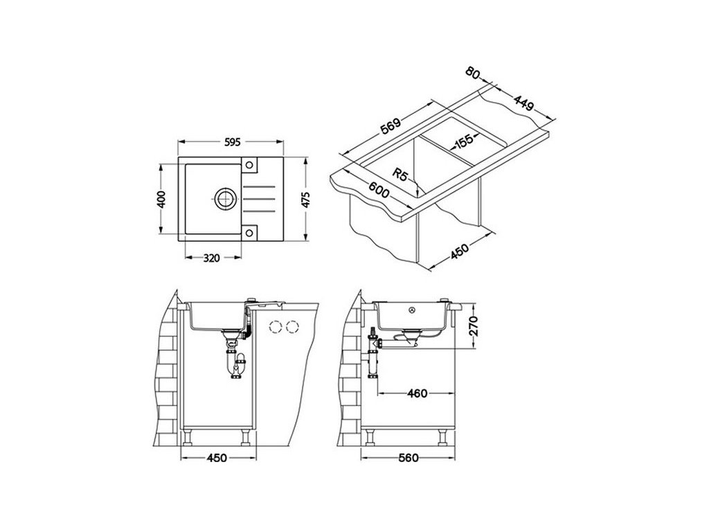 Vstavaný drez, univerzál. Prevedenie: granitový drez s odkvapom Vonkajší rozmer: 595 x 475 mm Rozmer vaničky: 320 x 400 x 160 mm Exentrický sitkový ventil 3 1/2 s prepadom, sifón pre úsporu miesta s odbočkou na umývačku Úchyty a tesnenie pre upevnenie drezu v balení S otvor pre batériu Návod na inštaláciu v obrázkoch na obale Inštalácia do skrinky o šírke 450 mm Batéria Zina Vysokotlaková batéria otočné ramienko rozmer: 199 x 298 mm prevedenie: chróm / farebný nástrekDodatočné parametre