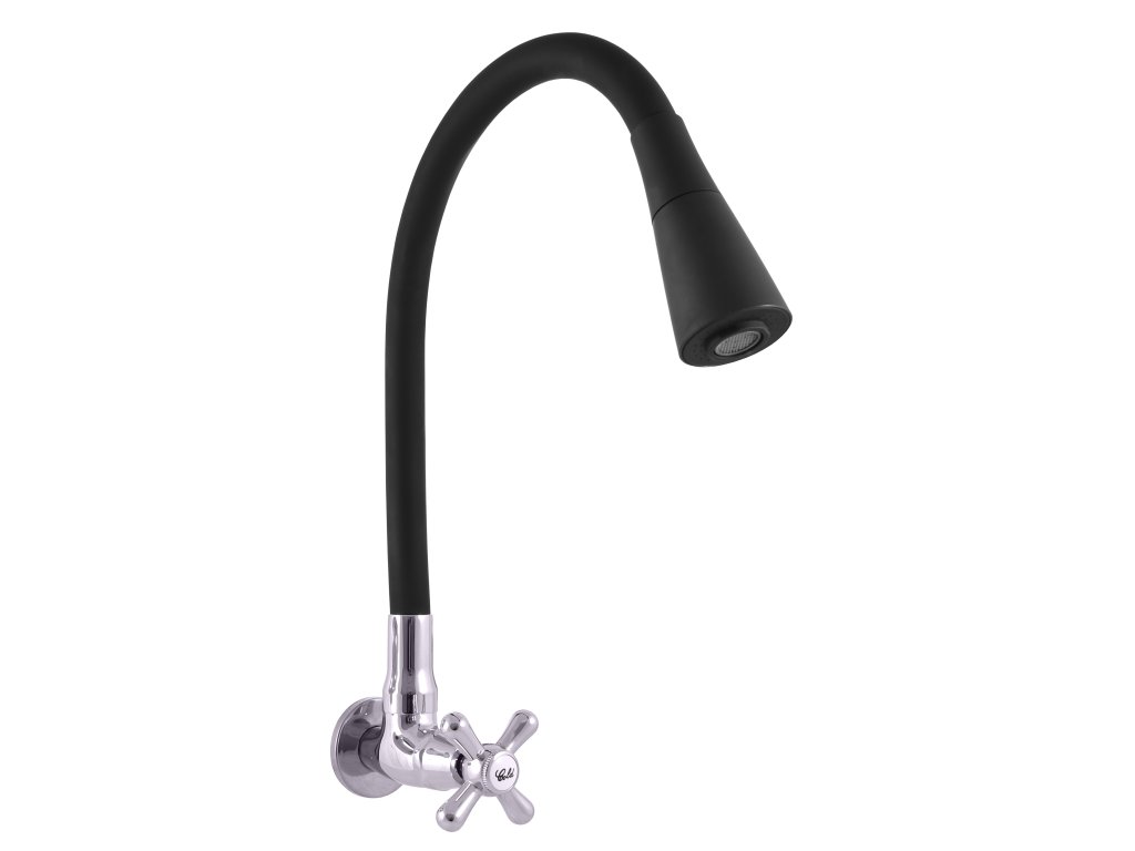 Vodovodná batéria nástenná na jednu vodu s flexibilným otočným ramienkom so sprchou.