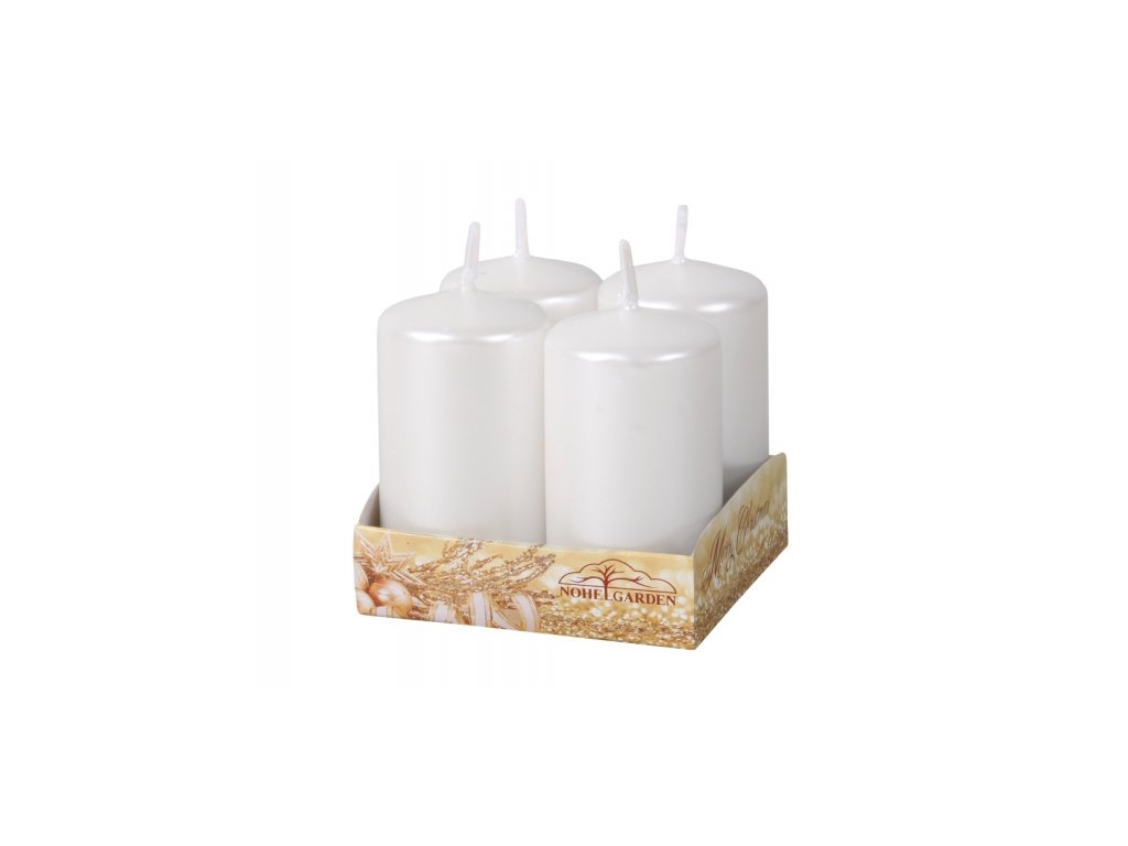 Lesklá biela adventná sviečka v tvare valca. V balení sú 4 kusy. Veľkosť sviečky: d4 x 8 cm.Dodatočné parametre