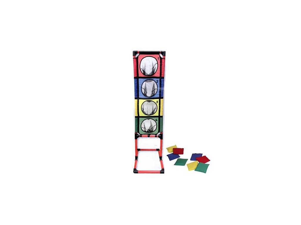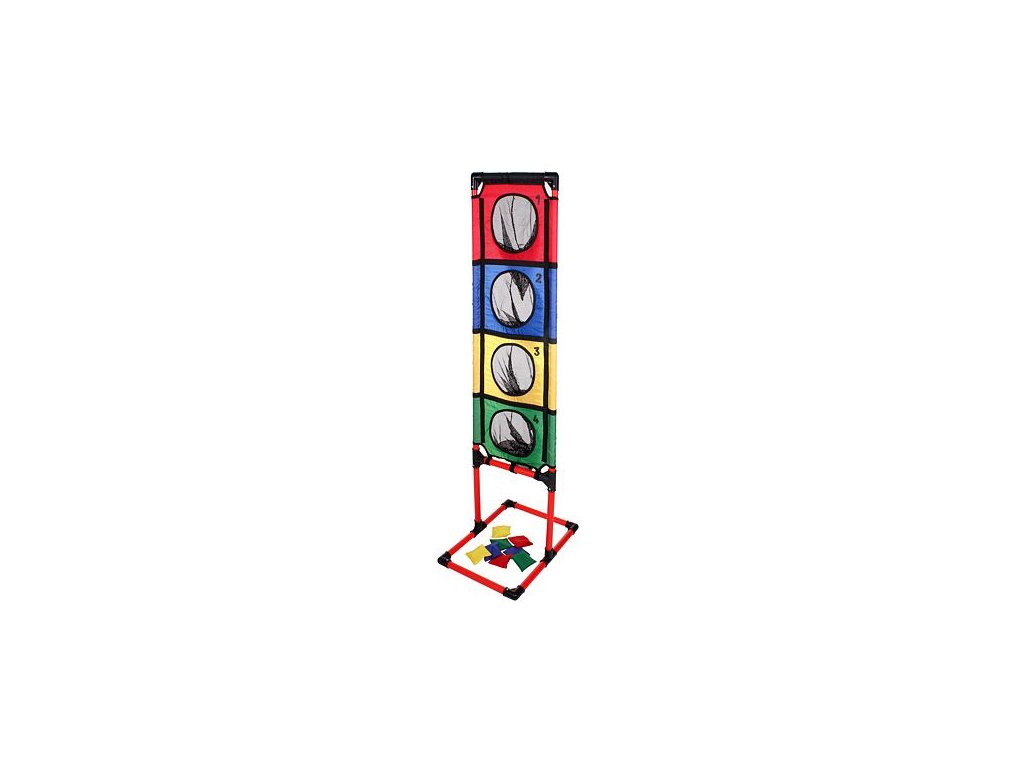 Merco Vertex Target Throw je zábavná hra pro celou rodinu, kdy je cílem trefit otvor tzv. bean bagem, tedy sáčkem vyplněným fazolemi a gumovými kuličkami. Celá sada obsahuje skládací terč vyrobený z polyesteru a lehké PVC konstrukce a osmi barevnými sáčky. Hru můžete hrát sami a trénovat tak svou přesnost spodního hodu, nebo hrajte s přáteli a vytvořte si svou soutěž o to, kdo získá nejvíce bodů. Terč má po jednoduchém složení rozměry přibližně 172 x 44 x 62 cm a hmotnost necelé 2 kg. Pokud hledáte novou hru do školy, pro dětské kroužky nebo pro svou rodinu, Vertex Target Throw je to pravé! Upozornění: Není vhodné pro děti mladší 3 let. Vždy házejte bean bag spodem na terč a ne plnou silou horním švihem, jinak časem hrozí poškození terče. - materiál: PVC, polyester - 8 sáčků na házení, čtyři barvy - rozměry sáčku: 10 x 10 x 1,5 cm - hmotnost sáčku: 70 g - rozměry terče: 172 x 44 x 62 cm (výška x šířka x hloubka) - hmotnost terče: cca 2 kg - průměr otvorů: 22 cm - jednoduché a rychlé složení a rozložení pro uskladnění - rozměry balení: 130 x 22 x 11 cmDodatočné parametre